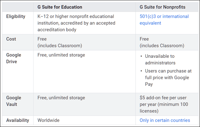 Si posees una institución sin fines de lucro, Google ofrece una versión gratuita exclusiva para estas empresas, que ofrece funciones similares que G Suite Education. Deberás verificar tu organización con una cuenta en Google for Nonprofits antes de proceder con esta opción.