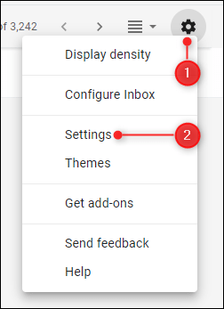Primeramente, dirígete a tu bandeja de entrada de Gmail. Luego has clic en el botón con forma de engranaje, para acceder a la sección de Configuración. Has clic en la barra “Configuraciones”.