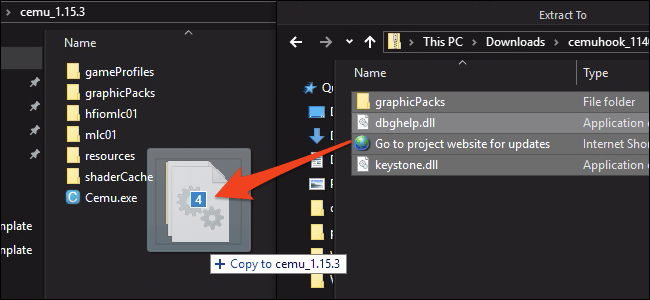 No ejecutes Cemu todavía; aún queda algo de configuración por hacer. Hay un módem llamado Cemuhook que necesitarás para paquetes de gráficos y opciones de rendimiento específicos. Descarga la versión correspondiente a tu versión de Cemu y abre la carpeta Cemuhook comprimida. Puedes arrastrar todo aquí en tu carpeta de instalación de Cemu.