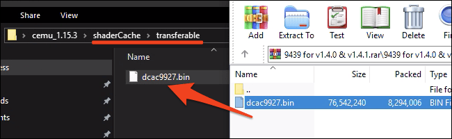 Descarga las cachés de los juegos a los que vayas a jugar y abre la carpeta.rar. El archivo de caché actual es un archivo.bin que querrás transferir a shaderCache/transferible/ en tu carpeta Cemu.