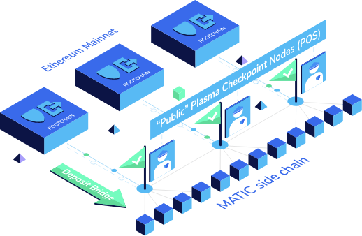 Para lograr una mejor escala, Matic Network depende de las cadenas laterales para realizar el cálculo fuera de la cadena. Esencialmente, esto permite procesar la mayoría de las transacciones fuera de la cadena Ethereum.