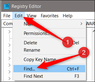 En el Editor del Registro, haga clic en «Editar» y luego en «Buscar».
