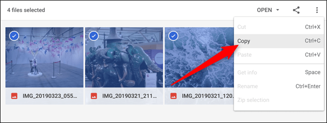 Una vez que hayas abierto el archivo, debes mover el contenido a una carpeta en tu Chromebook seleccionando los archivos que quieres usar con la tecla CTRL. Y haciendo clic en cada elemento. Después debes hacer clic derecho en un archivo y luego, debes hacer clic en “Copiar”.