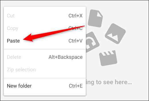 Ahora, debes ir a la carpeta en donde quieres guardar los archivos en tu Chromebook, a través de la aplicación Archivos. Ahora, haz clic con el botón derecho y luego, vuelve a hacer clic en “Pegar”, en el menú contextual.