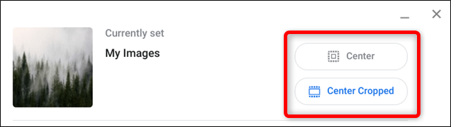 A veces, las imágenes que ha guardado en el equipo pueden aparecer un poco estiradas o recortadas debido a conflictos de resolución entre la imagen y la pantalla. Si eso sucede, desplácese hasta la parte superior y seleccione «Center» o «Center Cropped». Dependiendo de la resolución de la imagen, podría aparecer en el centro de su escritorio con bordes negros alrededor o estirada y ligeramente recortada, respectivamente.