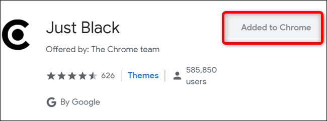 Una vez instalado el tema, el icono «Añadir a Chrome» se convierte en un icono «Añadir a Chrome» grisáceo.