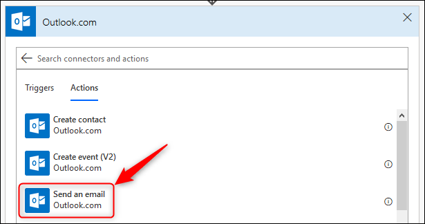 Aparecerán las opciones «Enviar un correo electrónico». Puedes empezar a ver cómo está tomando forma el flujo, con un gatillo en la parte superior y acciones en la parte inferior.
