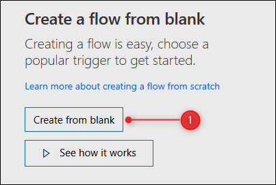 Si nunca ha creado un flujo antes, esta página estará en blanco; de lo contrario, contendrá cualquier flujo que haya creado previamente. Haga clic en Nuevo > Crear desde blanco para iniciar un nuevo flujo desde cero.