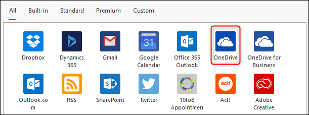 Para configurar este flujo, necesitamos seleccionar una acción de disparo, que es una modificación de archivo de OneDrive. Empiece por hacer clic en el servicio OneDrive.
