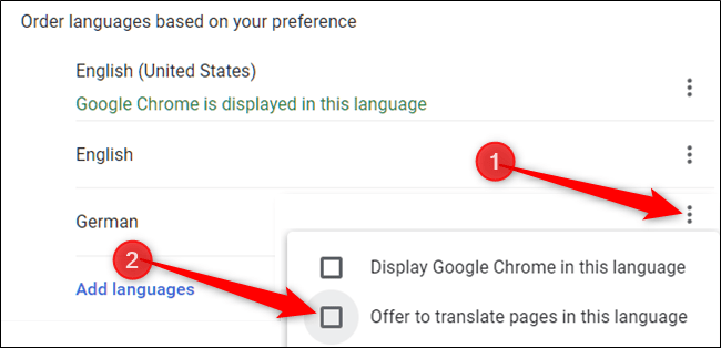 Pero si prefieres que Chrome se encargue también de estos idiomas, haz clic en más (tres puntos junto a un idioma) junto al idioma y marca la opción «Ofrecer traducir páginas en este idioma». Esto permite a Chrome traducir idiomas específicos para ti en el futuro.