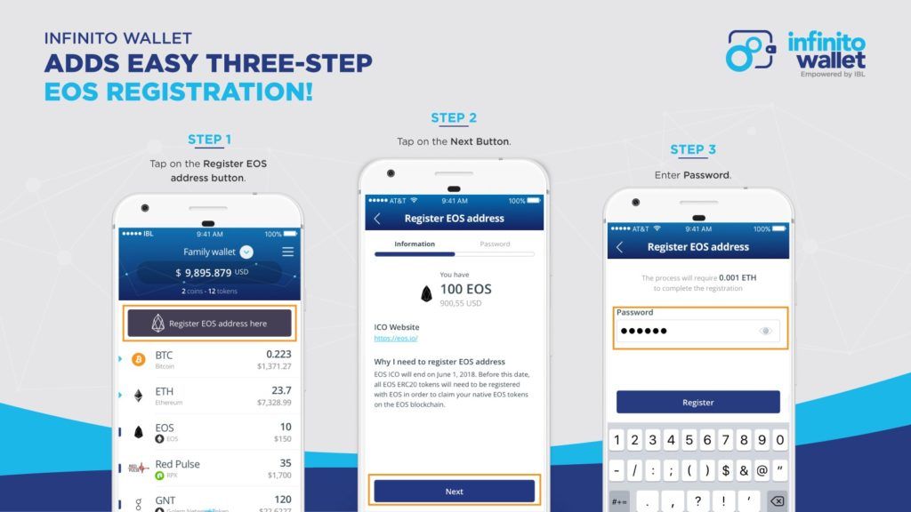 Infinito Wallet es una cartera universal multiactivos que ofrece soporte para EOS, Bitcoin, Bitcoin Cash, Litecoin, Ethereum, Dash, Neo y Dogecoin. Además, la cartera EOS de Infinito permite el acceso a los principales tokens de cadenas de bloqueo de contratos inteligentes.