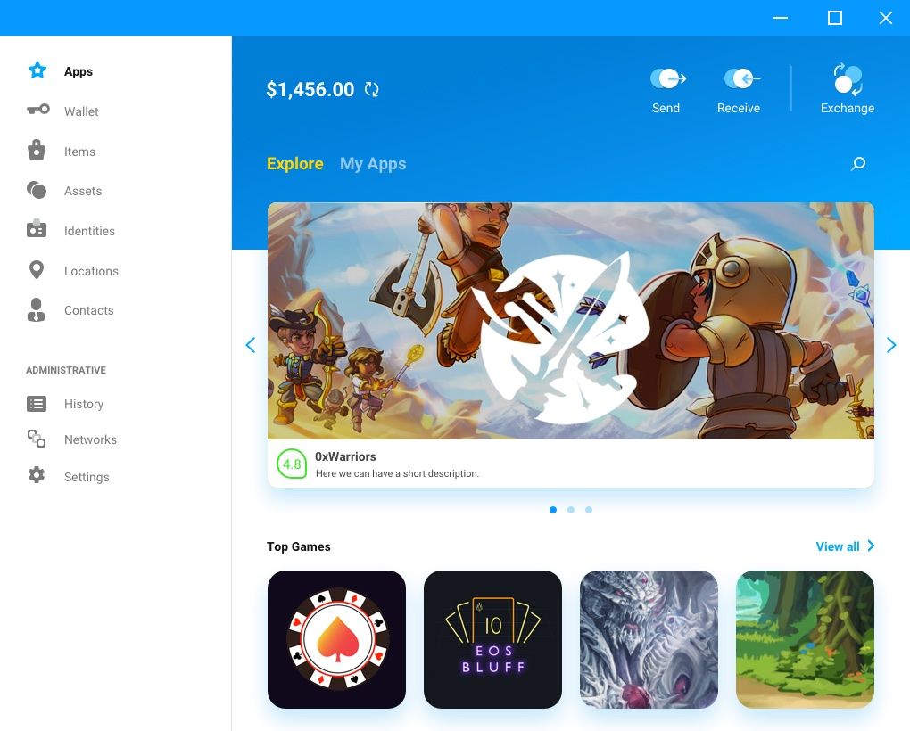 Esta cartera es específica para la red EOS. La cartera también está totalmente integrada con las funciones disponibles en el software EOS.IO. Esta cartera de escritorio es compatible con las plataformas Windows, Linux y Mac.