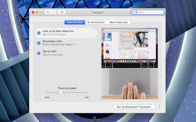 Ahora bien, con esta opción habilitada, podrás hacer clic con el botón central en una MacBook, pero también ejecutará la función de búsqueda predeterminada. Si deseas deshabilitarla, abre las Preferencias del sistema y ve a la preferencia de nombre “Trackpad”. Ahora, desmarca la opción “Buscar y detectores de datos” y puedes hacer clic con el botón central sin que aparezca nada.