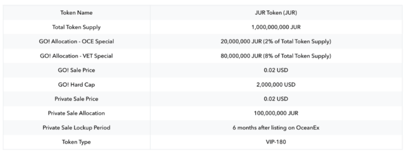 La ronda privada tuvo todo un gran aumento de 2 millones de dólares después de haber vendido 100 millones de tokens (10% del suministro total) a un precio de 0.02$ por cada token JUR.