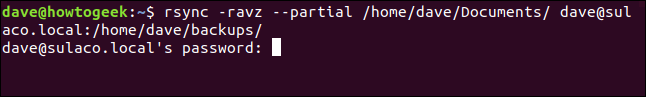 rsync -ravz –parcial /home/dave/Documents/ dave@sulaco.local:/home/dave/Backups/