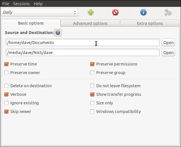 rsync -ravz –parcial /home/dave/Documents/ /media/dave/NAS/dave/backups/