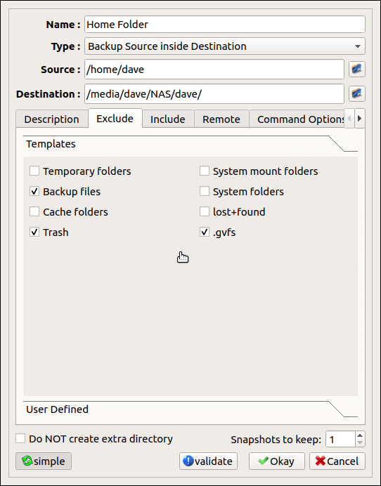 El programa luckyBackup es mucho más que una simple envoltura para rsync. Es un programa de copia de seguridad que utiliza rsync entre bastidores. Por ejemplo, luckyBackup puede hacer múltiples «instantáneas» de su copia de seguridad. A continuación, puede «retroceder» a las versiones de los archivos en cualquiera de las instantáneas.