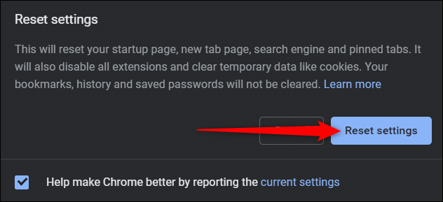 Aquí tienes que leer la advertencia, tienes que estar seguro de que quieres restablecer la configuración de Chrome y luego haz clic en «Restablecer configuración».