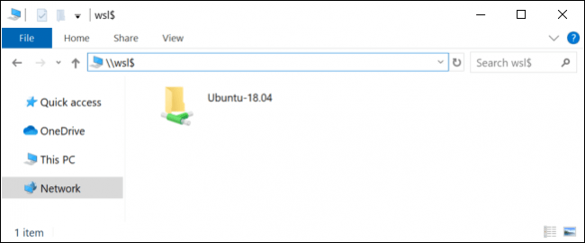 Ahora verás las carpetas para todas tus distribuciones de Linux instaladas, que están expuestas como si fueran recursos compartidos de red. Por ejemplo, Ubuntu 18.04 generalmente está disponible en \\wsl$\Ubuntu-18.04.