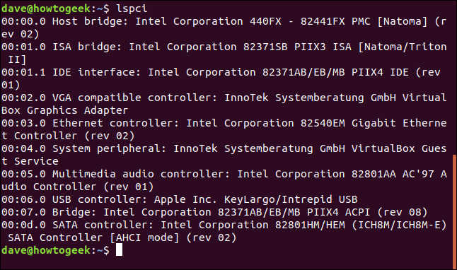 Como podrás ver, hay muchos dispositivos de hardware listados en la salida del terminal de Linux.