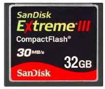 SanDisk presentó la tarjeta CompactFlash de 32GB Extreme III. Este nuevo modelo ofrece velocidades de lectura y escritura de 30MB/s. Estará disponible en octubre por 299.99 dólares.