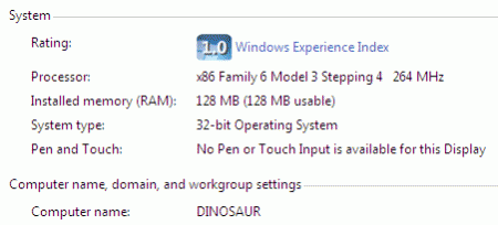 con esos 256 de ram, tardo como 5 minutos en bootear, se imaginan el windows 7 en pentium 2 con 128…