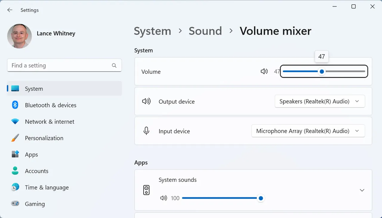 - If you want to adjust volume for each app, you can do it with the Volume mixer.